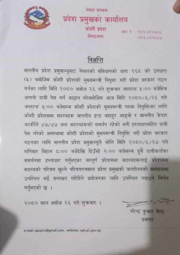 काठमाडौँ, २७ असोज । कोसी प्रदेशको मुख्यमन्त्रीको आज टुङ्गो लाग्दै छ ।